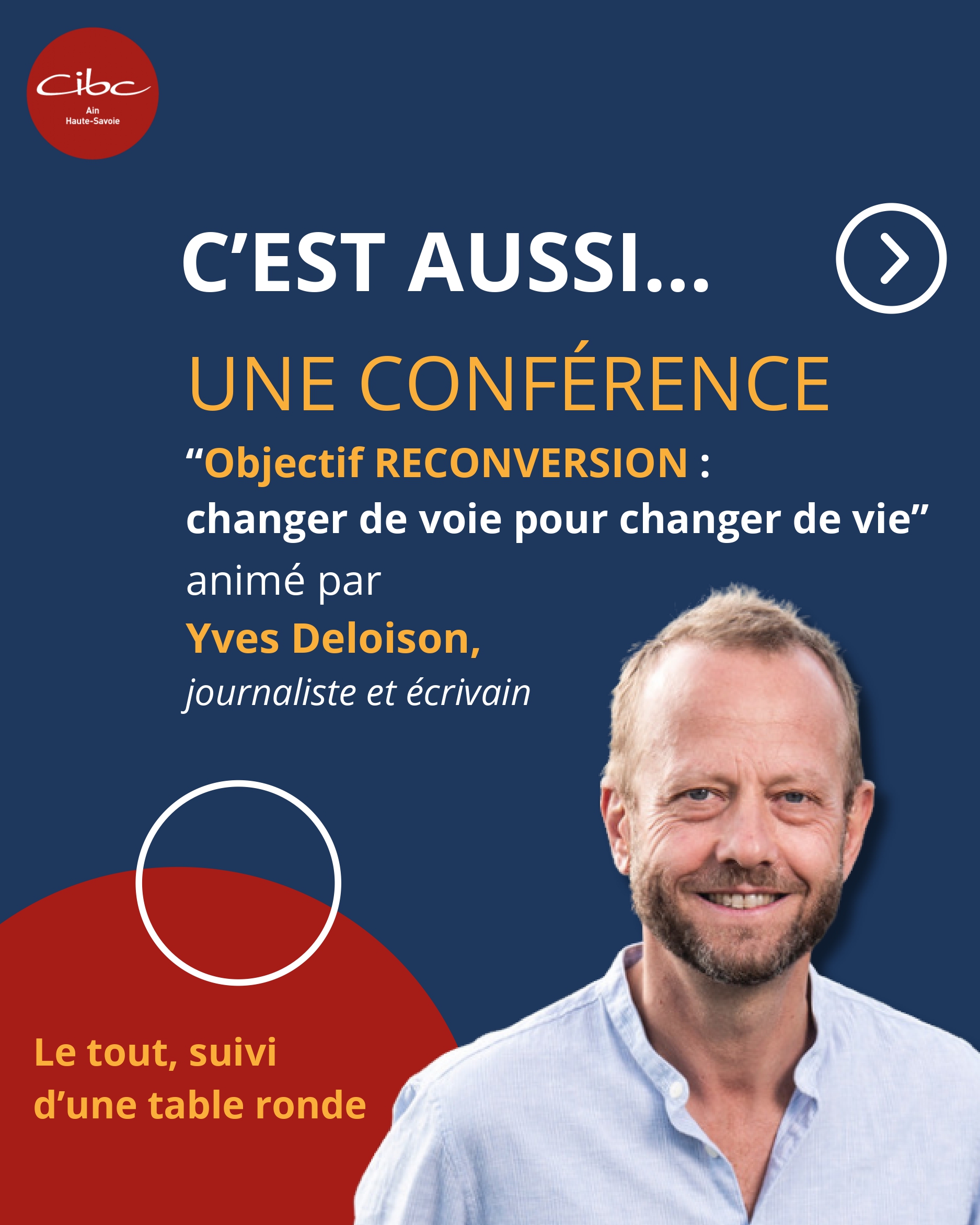 Au programme, une trentaine d’exposants et acteurs de l’emploi provenant de plusieurs filières (Transport, BTP & Industrie, Santé ou encore Artisanat…) seront présent pour répondre à vos questions. De plus, le journaliste et écrivain Yves Deloison animera une conférence « Objectif reconversion : changer de voie pour changer de vie ». Le CIBC propose également une mini-conférence et une table ronde lors de cet événement.